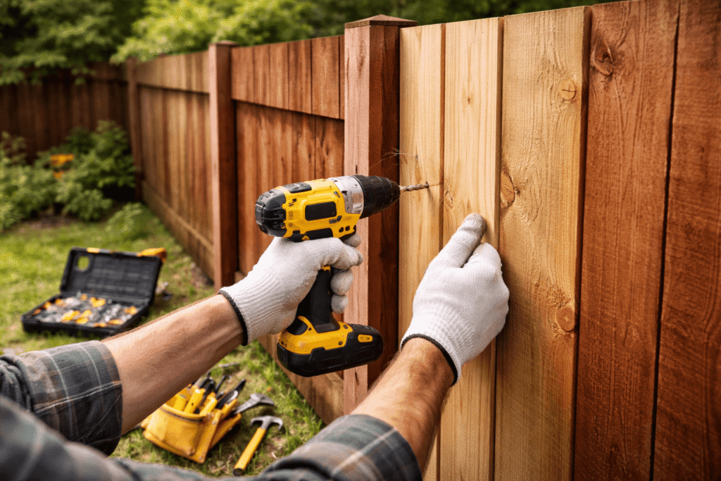 - Fence repairs and panel replacement